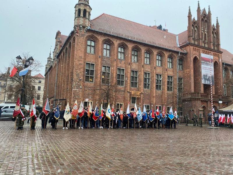 Dnia 18 stycznia 2023 roku uczniowie klasy 1c, 1d i 1e wraz z Pocztem Sztandarowym naszej szkoły brali udział w miejskich obchodach 103. rocznicy powrotu Torunia do Wolnej Polski.
