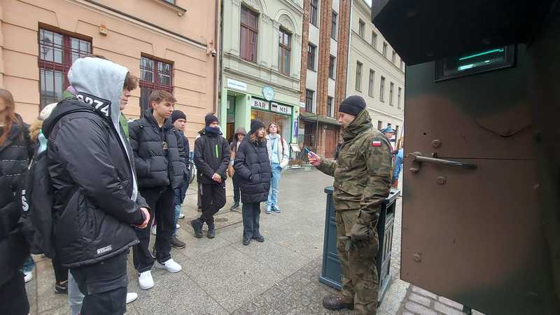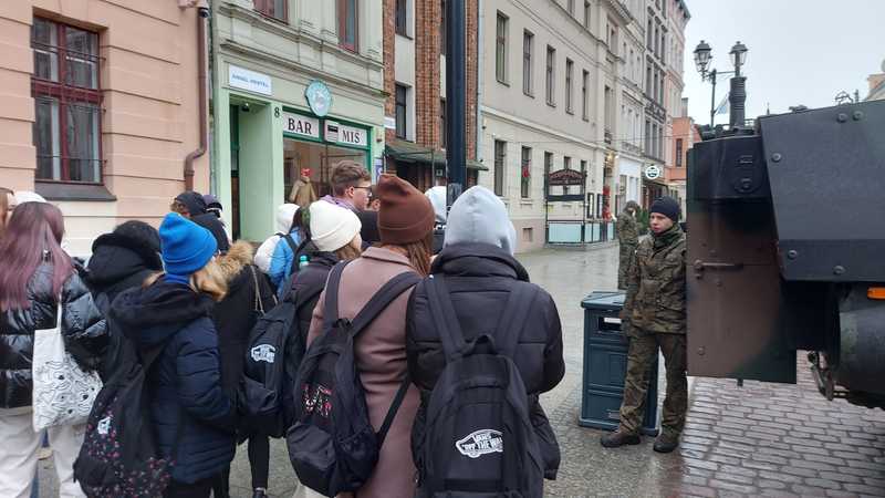 Przed uroczystościami klasa 1c i 1d obejrzała prezentowane na Rynku Staromiejskim pojazdy artyleryjskie. Dzięki uprzejmości wojskowych dowiedzieli się również do jakich celów używany jest każdy z oglądanych pojazdów oraz jakie ma wyposażenie.