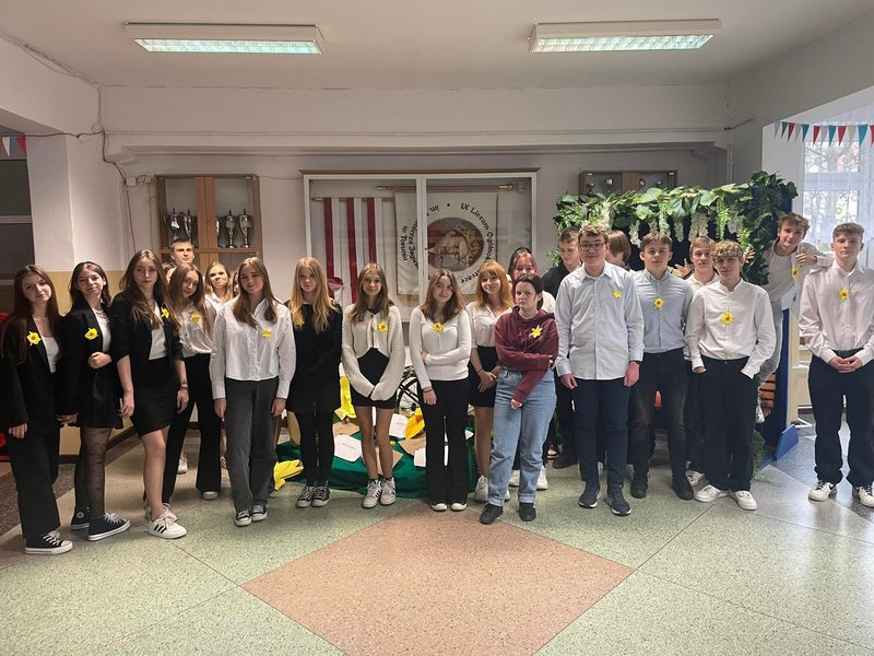 19. kwietnia przypada rocznica wybuchu powstania w getcie warszawskim– największego zbrojnego zrywu Żydów podczas II wojny światowej, a zarazem pierwszego powstania miejskiego w okupowanej Europie. Jako szkoła wzięliśmy udział w akcji pod hasłem "Łączy nas pamięć", która podkreśla siłę wspólnoty, znaczenie solidarności, potrzebę dialogu ponad podziałami. Żółty żonkil jest symbolem zbiorowej pamięci. Dlatego dzisiaj wszyscy uczniowie i pracownicy szkoły uczcili tę pamięć z przypiętym do piersi emblematem żółtego żonkila