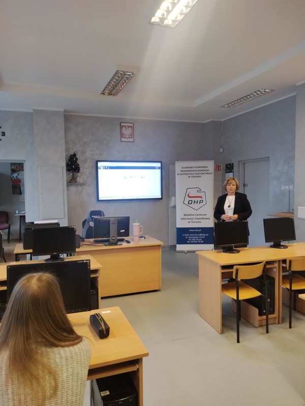 08.01.2024 uczniowie klasy 3c wzięli udział w badaniu kompetencji zawodowych zorganizowanym w ramach warsztatów rozwoju osobistego i doradztwa zawodowego. Kwestionariusz Zainteresowań Zawodowych przeprowadził nam doradca zawodowy z Mobilnego Centrum Informacji Zawodowej w Toruniu działającego w ramach Kujawsko- Pomorskiej Wojewódzkiej Komendy Ochotniczych Hufców Pracy w Toruniu. Doradca zawodowy zaproponował również młodzieży bezpłatne usługi doradcze oraz pośrednictwo pracy. Dziękujemy bardzo za możliwość skorzystania z tego wsparcia.