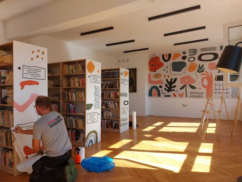 Wczoraj w bibliotece szkolnej zakończył się kolejny etap prac remontowych. Pojawiły się fototapety na ścianach oraz regałach bibliotecznych. Etap ten upiększa naszą bibliotekę szkolną, ale także sprawia, że korzystanie z księgozbioru staje się łatwiejsze. Na nowych frontach regałów znajdują się opisy działów, co usprawnia i przyspiesza samodzielne korzystanie z wolnego dostępu do książek.