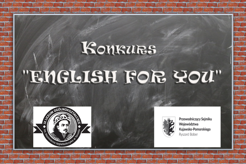 Dyrekcja IX LO w Toruniu oraz nauczyciele języka angielskiego zapraszają uczniów klas siódmych i ósmych szkół podstawowych z powiatu i miasta Torunia do wzięcia udziału w I edycji Konkursu Języka Angielskiego „English For You”.