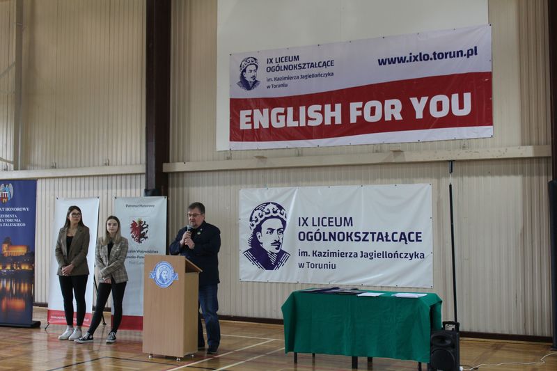 oraz Dyrektor IX Liceum Ogólnokształcącego, im. Kazimierza Jagiellończyka w Toruniu, Pan Piotr Drążkowski.