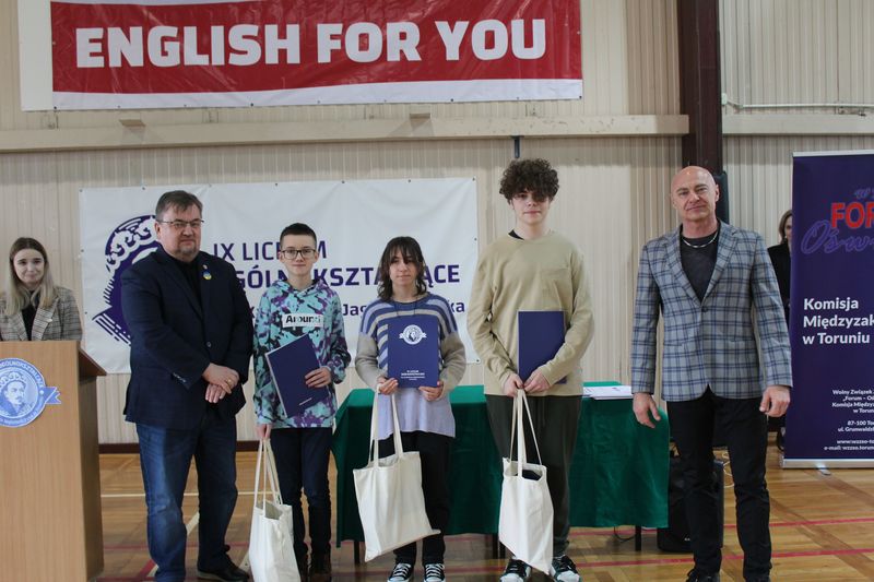 12 kwietnia w naszej szkole odbył się finał III edycji międzyszkolnego konkursu języka angielskiego „English For You". W konkursie rywalizowało 45 uczniów klas siódmych i ósmych z szesnastu szkół z Torunia i powiatu toruńskiego. Po konkursie uczestnicy poznawali ofertę edukacyjną naszej szkoły w ciekawy i aktywny sposób oraz zwiedzili wszystkie zakamarki budynku szkoły, zaś ich nauczyciele uczestniczyli w warsztatach metodycznych przeprowadzonych przez p. Grzegorza Fidalę z wydawnictwa Oxford.