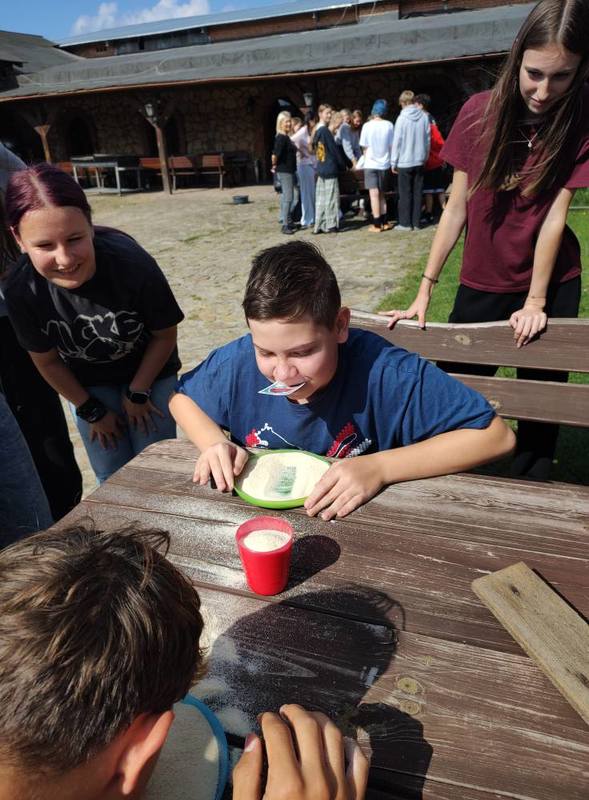 Klasa językowa 1D pozdrawia z Grabowca, dokąd udaliśmy się na wyjazd integracyjny. W czasie wyjazdu odbyliśmy warsztaty językowe z j. hiszpańskiego i angielskiego, zintegrowaliśmy się podczas zajęć z panią pedagog oraz zjedliśmy pyszne kiełbaski z ogniska. W czwartek wracamy do szkoły, gdzie wkrótce zaczynamy zajęcia z native speakerami oraz powoli rozpoczynamy przygotowania do wyjazdu na EuroWeek.
