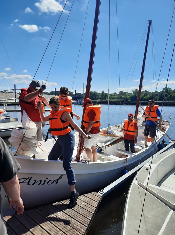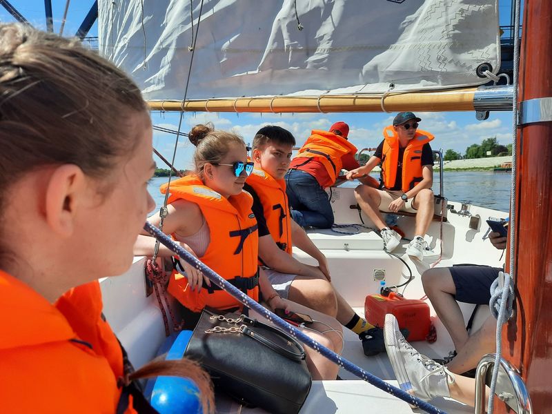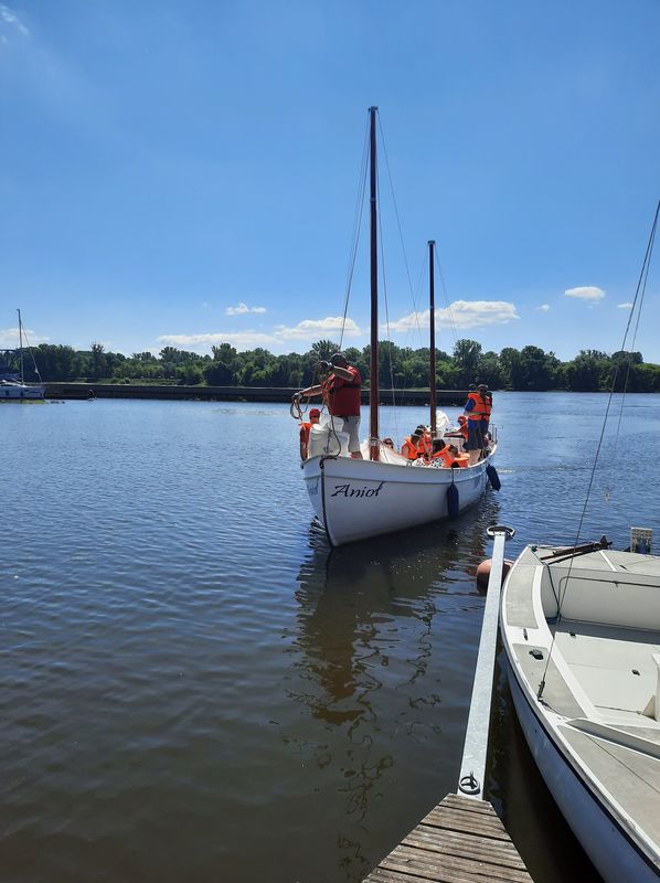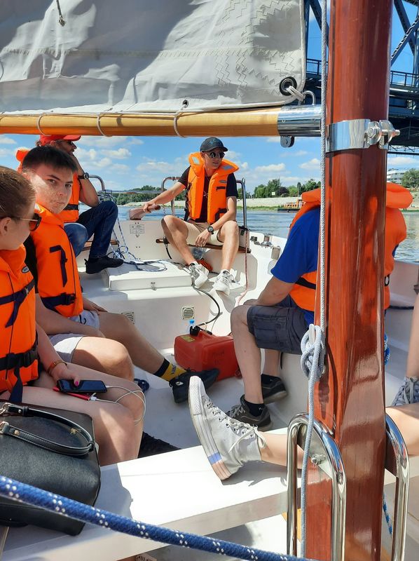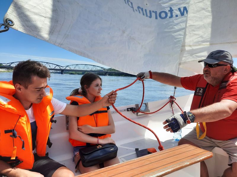 W środę klasa 2H o profilu ogólnym z językiem hiszpańskim, odwiedziła Przystań Toruń 2020 i dzięki uprzejmości Toruńskie Towarzystwo Tradycji Morskich, które prowadzi u nas w Szkolny Klub Żeglarski oraz dzięki Fundacji In Spe odbyliśmy 3 rejsy z krótkim instruktażem po Wiśle.