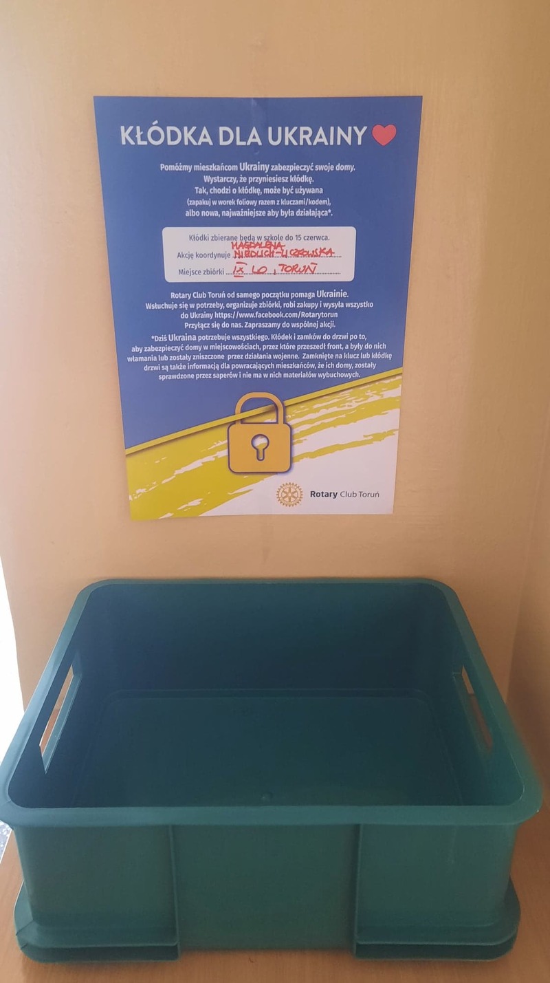 Rotary Club Toruń zaprasza całą społeczność szkoły do wzięcia udziału w akcji "Kłódka dla Ukrainy".