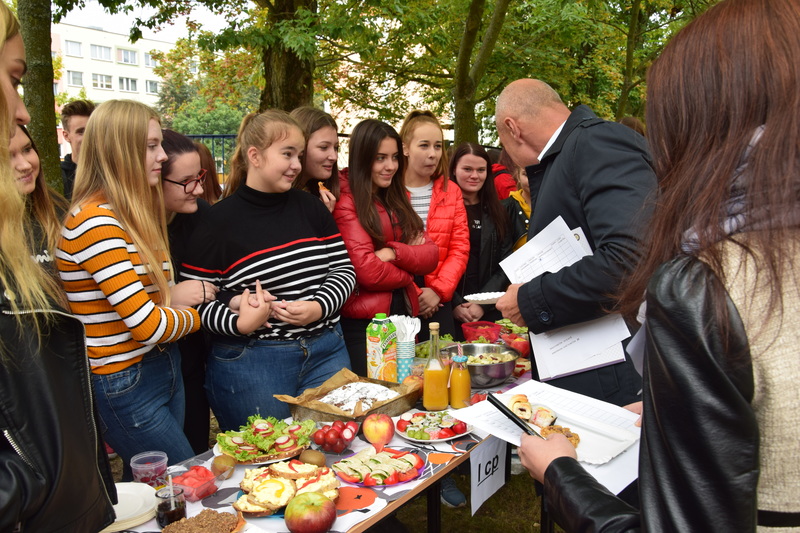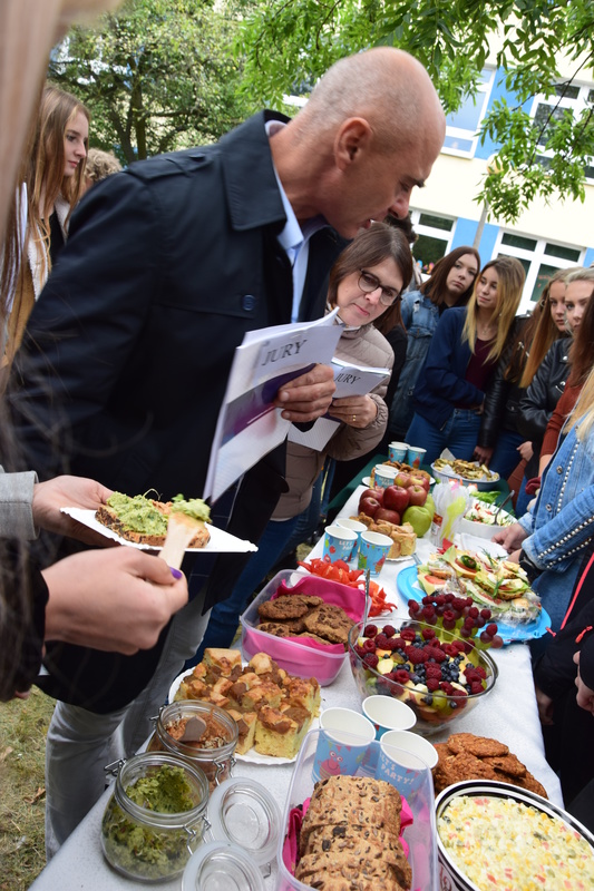Nie inaczej było również w tym roku. 25 września, na murawie przed budynkiem szkoły uczniowie prezentowali przygotowane przez siebie potrawy i przekąski, które oceniało szacowne jury w składzie: p. dyrektor, Piotr Drążkowski, p. wicedyrektor, Gabriela Gustowska, p. pedagog, Monika Lubas, p. Małgorzata Tyburska, nauczyciel biologii oraz p. Marcin Jurewicz, kierownik administracyjny.