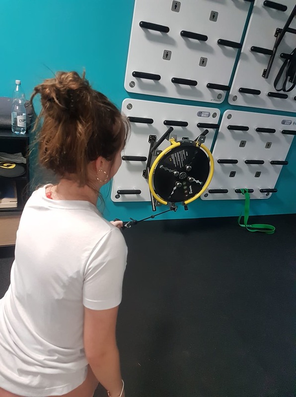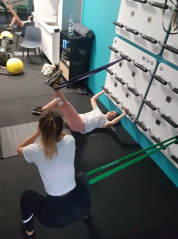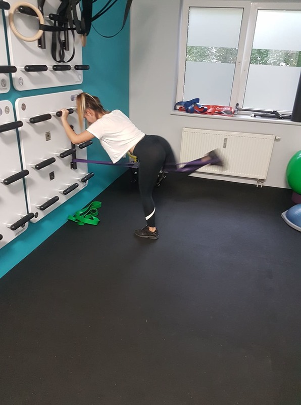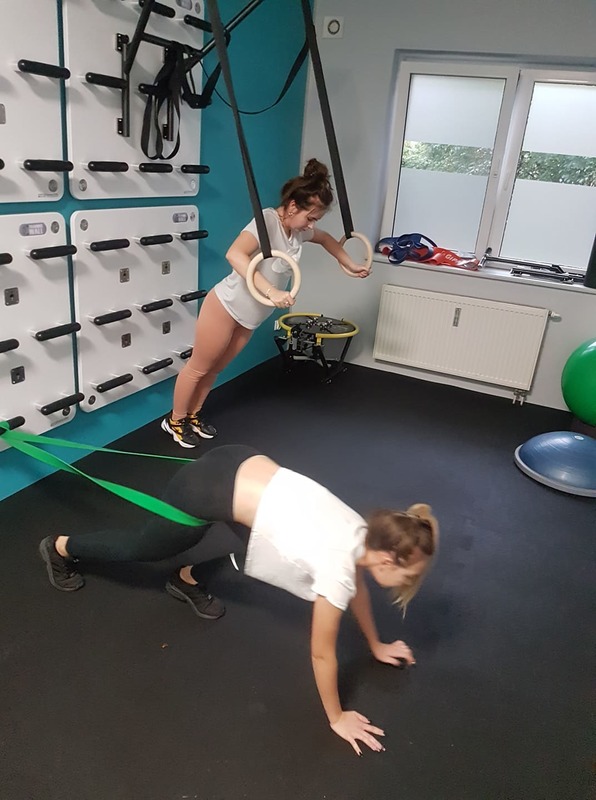 Uczennice III a na zajęciach w ramach kursu na instruktora rekreacji ruchowej o specjalności fitness - nowoczesne formy gimnastyki, w Cyryl Piela Fizjoterapia, na jedynej w okolicy Training Wall.