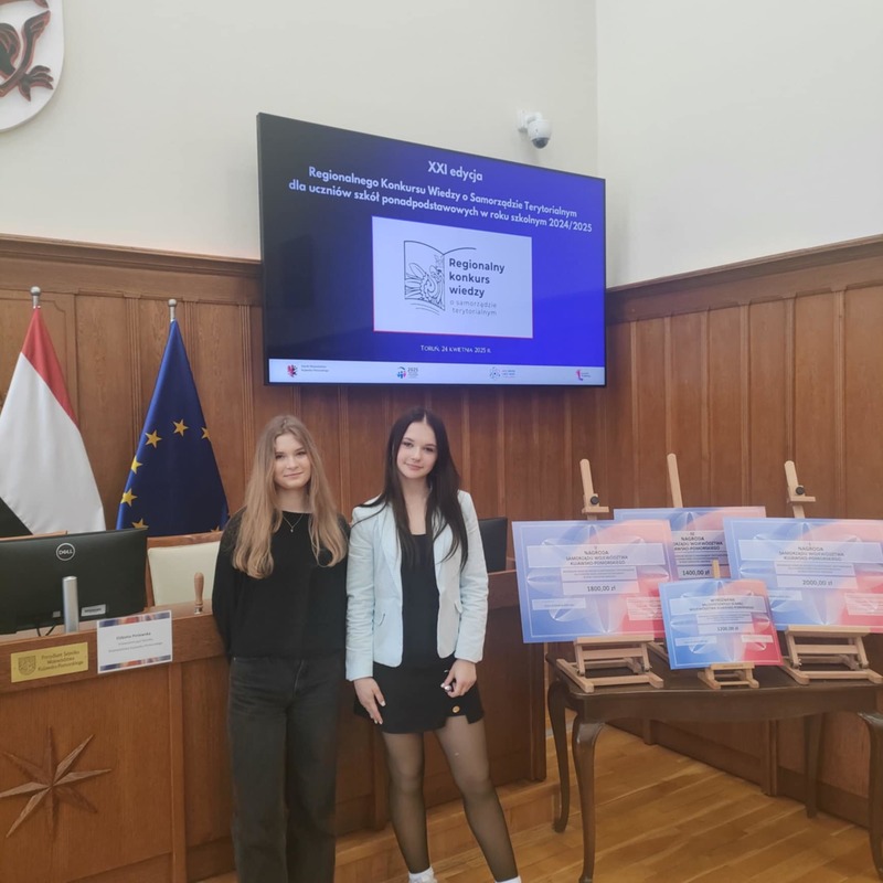 24.04.2025 roku odbył się finał konkursu wiedzy o samorządzie terytorialnym. Nie zabrakło w nim uczniów z naszej szkoły. Spośród 10 uczestników z całego województwa kujawsko-pomorskiego, IX LO reprezentowały dwie uczennice z klasy 2a: Maria Godkowska i Nadia Szynal. W finale uczestniczki zaprezentowały swoje prace i odpowiedziały na pytania zadane przez Komisję Konkursową.