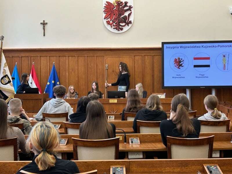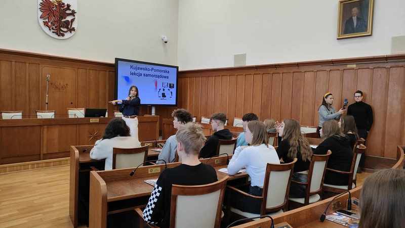 29 lutego uczniowie naszego liceum uczestniczyli w lekcji samorządowej w Urzędzie Marszałkowskim Województwa Kujawsko-Pomorskiego w Toruniu. Prowadzący zajęcia przybliżyli młodzieży funkcjonowanie samorządu województwa oraz podstawowe wiadomości na temat regionu.