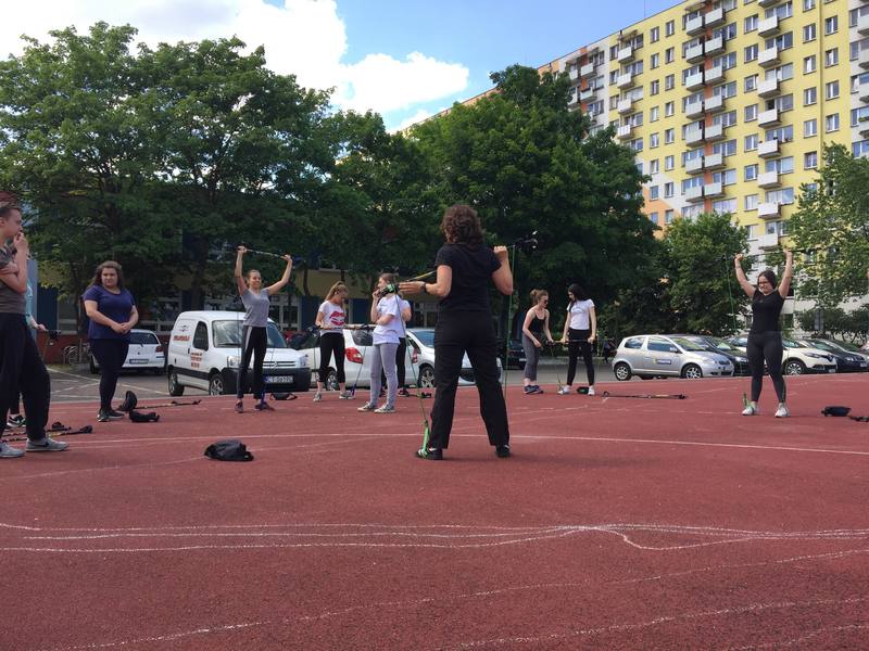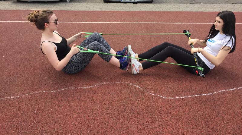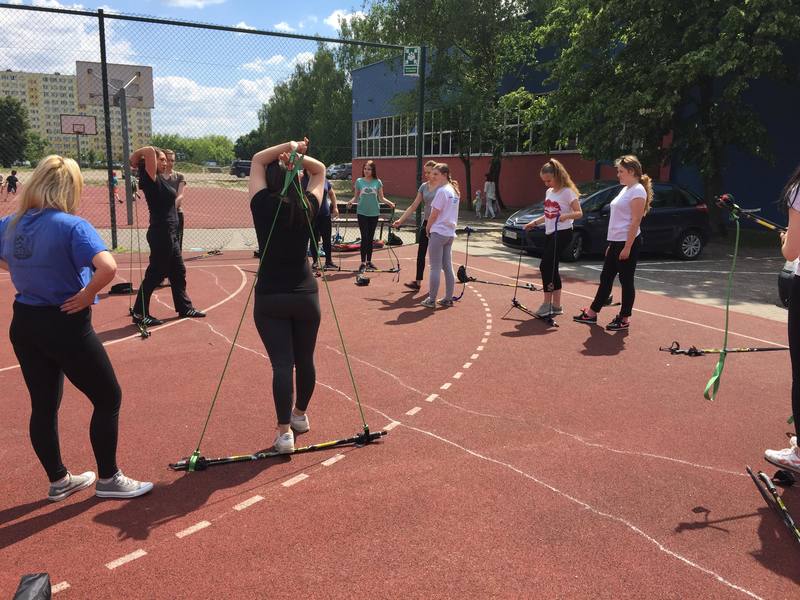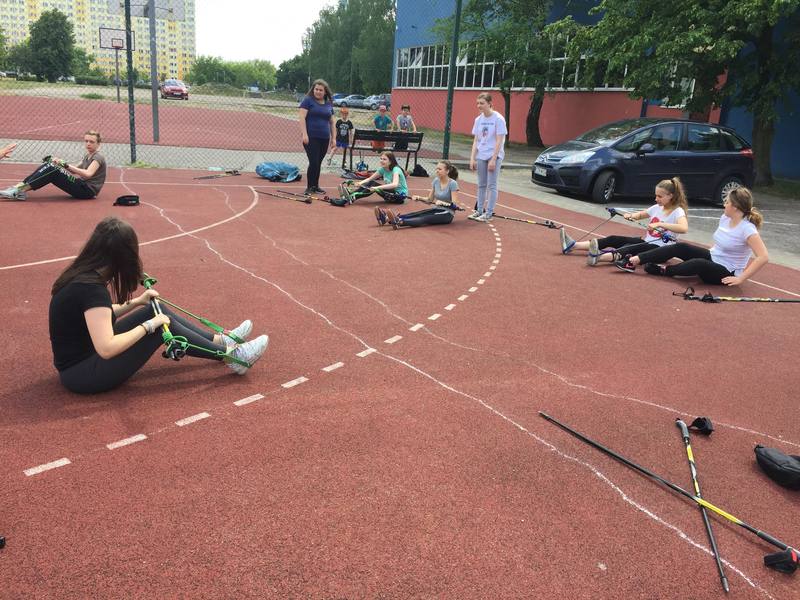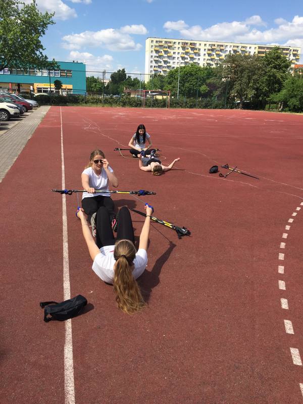 Klasa 2a prezentowała dzisiaj dla wszystkich zainteresowanych ćwiczenia wzmacniające z wykorzystaniem Gymstick Nordic Walking.