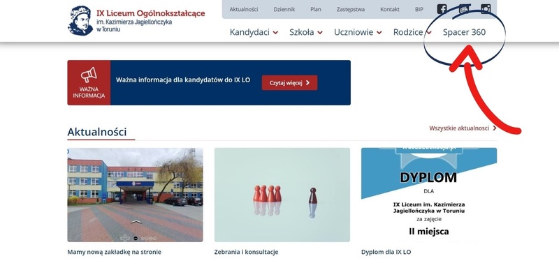 Zapraszamy do zakładki "Spacer 360". Znajduje się tam wirtualny spacer po naszej szkole. Życzymy udanego zwiedzania.