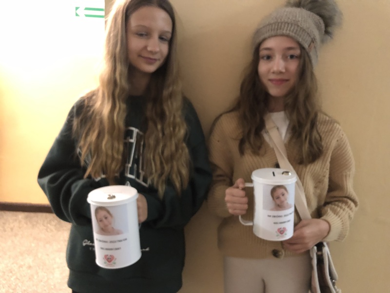 Przy wejściu 2 dziewczynki z puszkami: siostra i koleżanka Matyldy z rodzicami, wszyscy wrzucali, wedle chęci i możliwości.