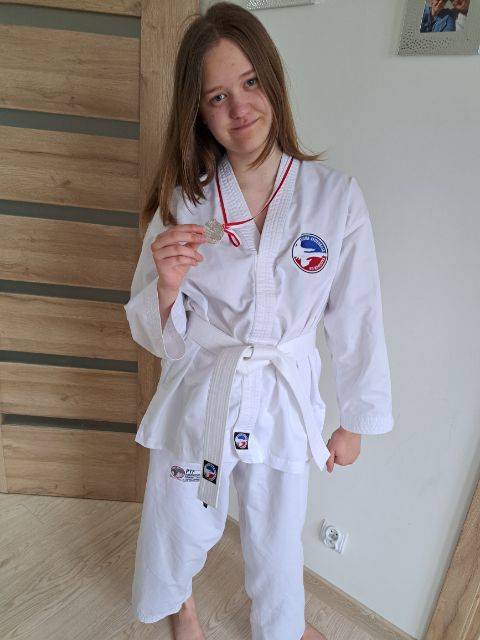 W ubiegłą niedzielę (14.05.2023) uczennice klasy 1F Katarzyna Szulc oraz Oliwia Skubisz wzięły udział w Mistrzostwach Warmii i Mazur Taekwon-do: Cykl Pucharu Polski. Obydwie odniosły sukces i wywalczyły sobie medale - Kasia zdobyła brązowy, a Oliwia srebrny. Gratulujemy serdecznie i życzymy dalszych zwycięstw!