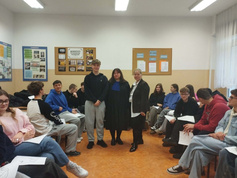 W naszej szkole odbyło się wyjątkowe spotkanie z panią mecenas, radcą prawnym, Katarzyną Skarżyńską która poprowadziła warsztaty dotyczące mediacji. Uczniowie klasy 3e mieli okazję dowiedzieć się, czym jest mediacja, jakie ma znaczenie w rozwiązywaniu konfliktów oraz jakie korzyści przynosi stronom sporu. Pani mecenas w ciekawy i przystępny sposób przedstawiła zasady prowadzenia mediacji, a także zaprosiła uczestników do praktycznych ćwiczeń, które pozwoliły lepiej zrozumieć rolę mediatora. Spotkanie było inspirującą lekcją dialogu i porozumienia, pokazującą, że rozmowa i kompromis są kluczem do pokojowego rozwiązywania sporów.