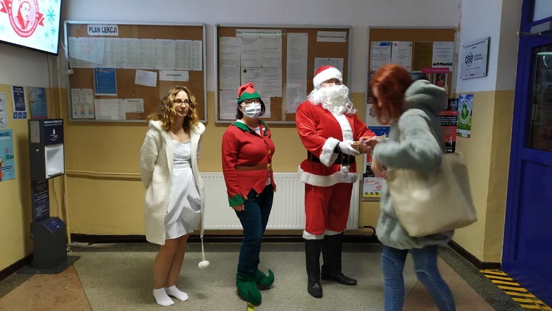 Dziś Mikołajki! Również w naszej szkole obchodziliśmy to święto - z tej okazji pojawił się u nas sam Święty Mikołaj, który w towarzystwie swoich uroczych pomocników, Elfa i Śnieżynki, rozdawał wszystkim grzecznym uczniom słodycze.