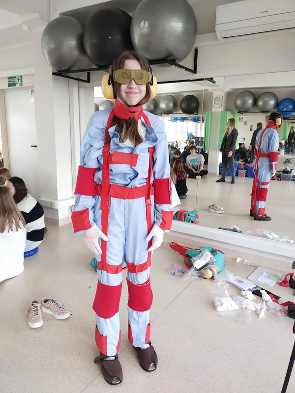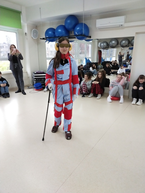 Uzupełnieniem spotkania była prezentacja kombinezonów geriatrycznych, w których, dzięki odpowiedniej symulacji uczestnicy mogli funkcjonować przez kilka chwil jako osoby starsze.