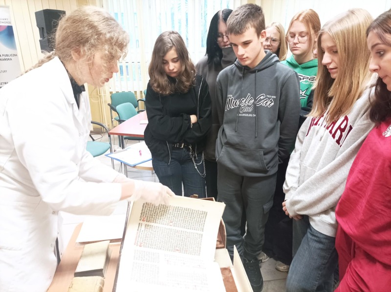 Klasa 1B w ramach spotkań "Odczarowywanie lektur szkolnych" wybrała się do Książnicy Kopernikanskiej. Uczestnicy spotkania mieli okazję zapoznać się z "Trenami" Jana Kochanowskiego ukazanymi w szerokim aspekcie filozoficznym,literackim, psychologicznym i kulturowym. Bardzo ciekawym elementem wykładów było zapoznanie się z starodrukami pochodzącymi z XVI w. oraz z materiałami, z których dawniej wykonywano książki.