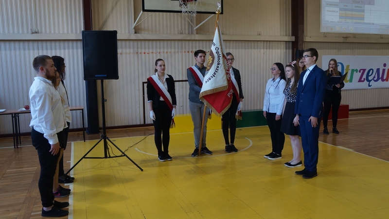 - w pierwszej Dyrektor Szkoły, mgr Piotr Drążkowski przyjął ślubowanie złożone na szkolny sztandar