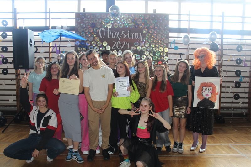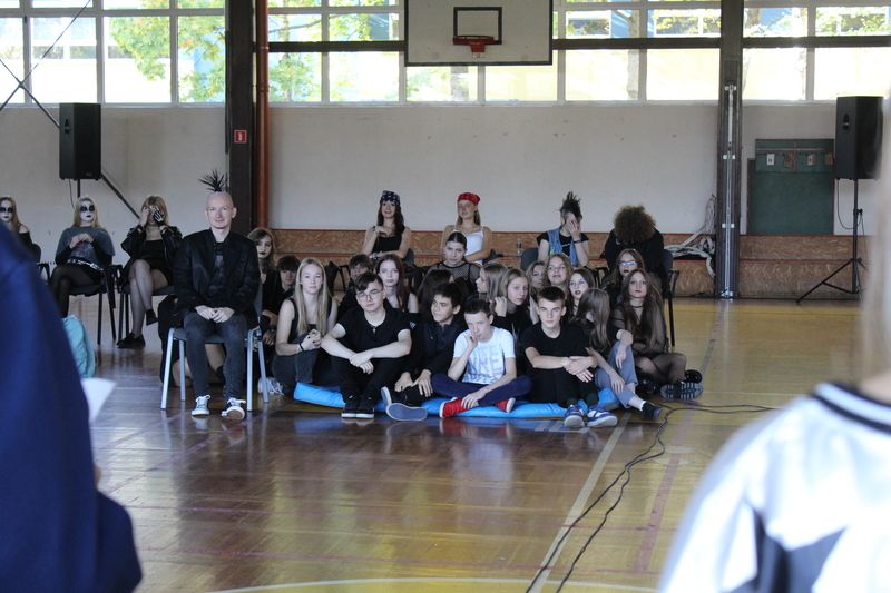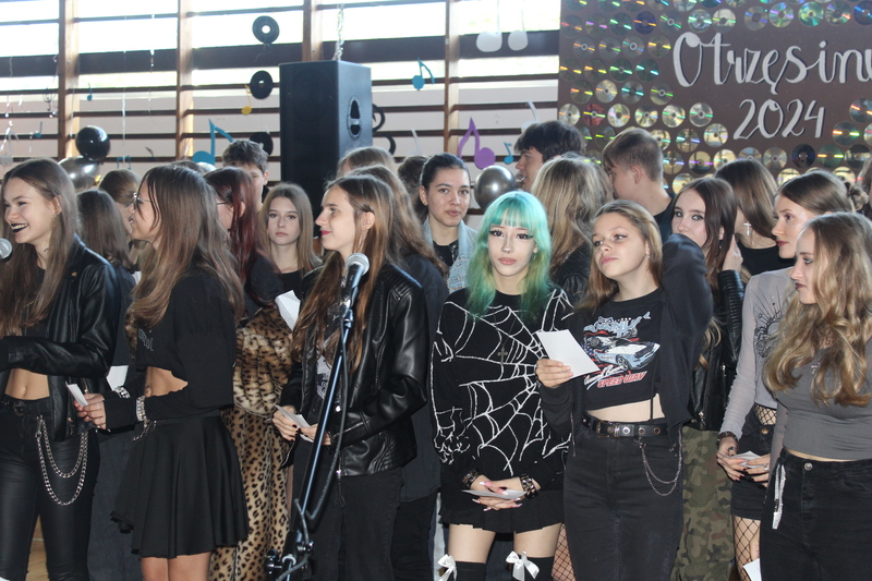 W dniu 11 października odbyły się w naszej szkole otrzęsiny klas pierwszych. Organizatorzy - klasa 2A, wraz z wychowawcą, panią Magdaleną Niedlich-Liczkowską, zorganizowali imprezę pod hasłem "Wszystko jest muzyką". Zadaniem klas pierwszych było przebranie się w określonym stylu muzycznym. Pierwszaki rywalizowały w kilku dyscyplinach, takich jak quiz wiedzy o muzyce, "jaka to melodia?", śpiewaniu hymnu klasy czy malowanie portretu wychowawcy w przebraniu. Jury, po burzliwych obradach, przyznało: