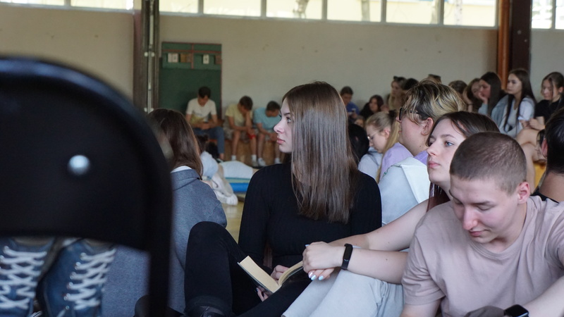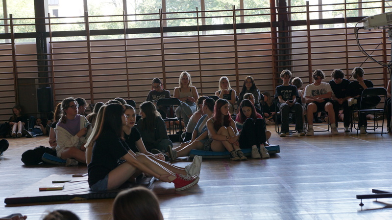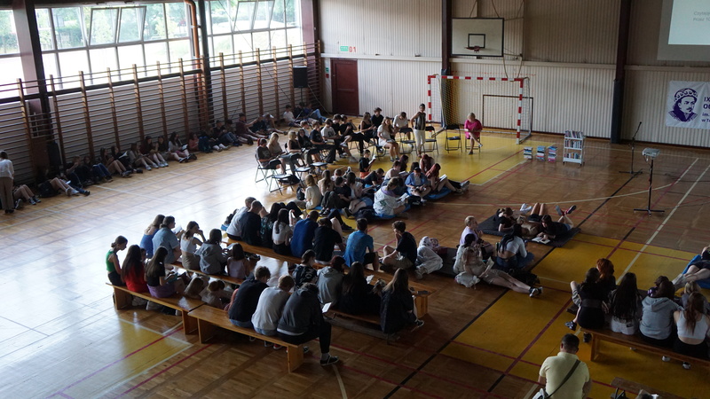 We wspólnym gronie, wszyscy razem, uczniowie i nauczyciele.