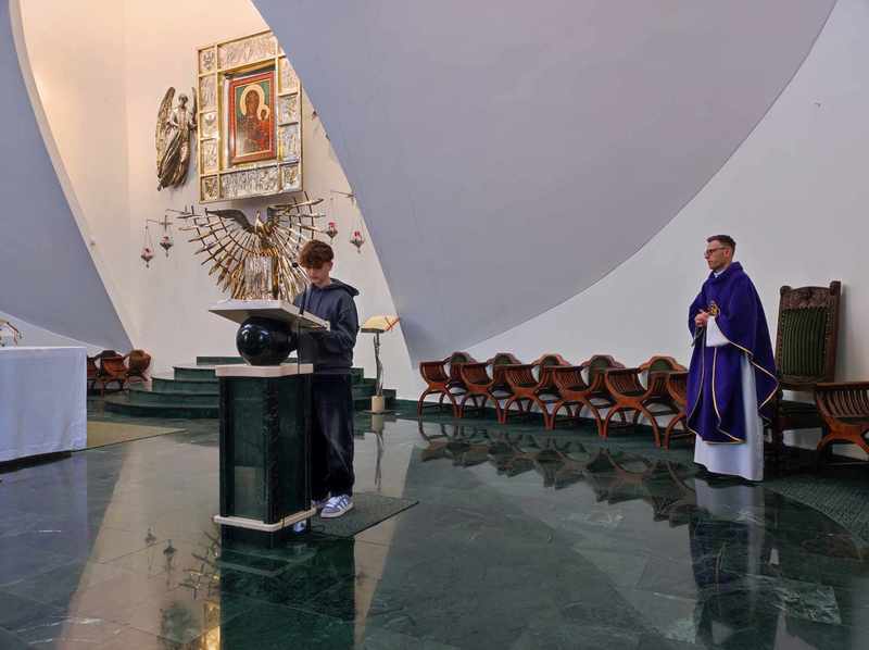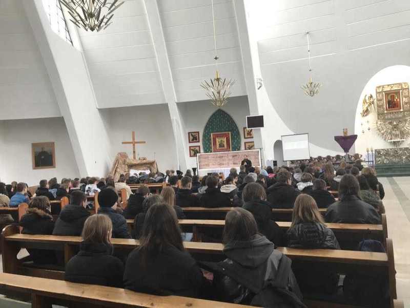 W dniach 25 – 27 marca uczniowie IX LO mieli możliwość wziąć udział w rekolekcjach wielkopostnych, organizowanych przez toruńską Parafię pw. Królowej Polski. Pierwszego dnia ze świadectwem swojej wiary wystąpiła młodzież ze Wspólnoty Dom Zwycięstwa, która działa przy Parafii pw. Św. Maksymiliana Kolbe. We wtorek prelekcję na temat Całunu Turyńskiego poprowadził p. Aleksander Sztrampski, który zaciekawił słuchaczy historią tego Płótna. Ostatniego dnia chętni mieli możliwość przystąpić do Sakramentu Pokuty i Pojednania. Uroczystą Mszą Świętą, podczas której o śpiew zadbała Wspólnota Dom Zwycięstwa, zakończyliśmy tegoroczne rekolekcje wielkopostne. Dziękujemy Księdzu Proboszczowi Andrzejowi Kowalskiemu za organizację i zaproszenie.