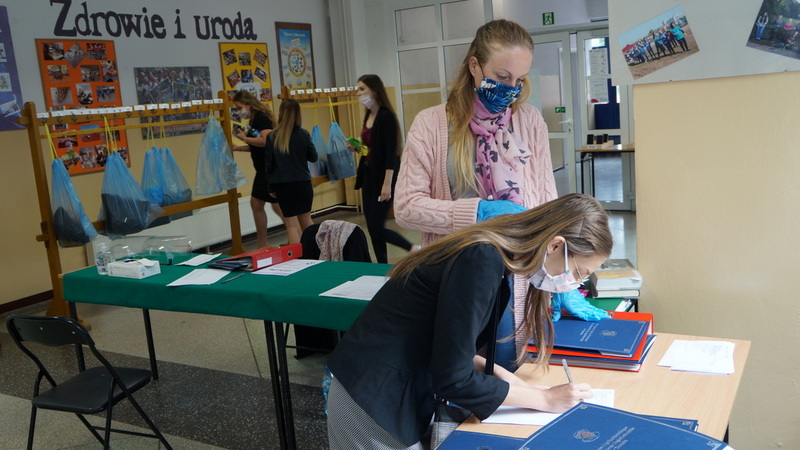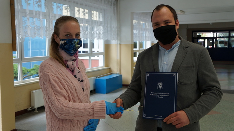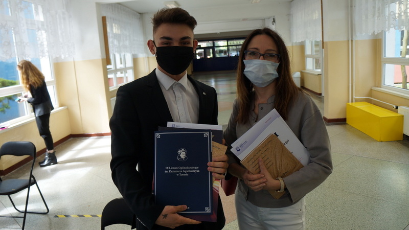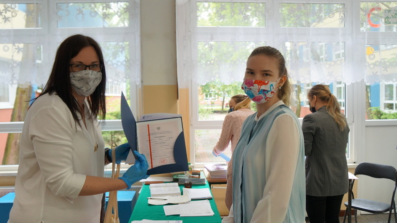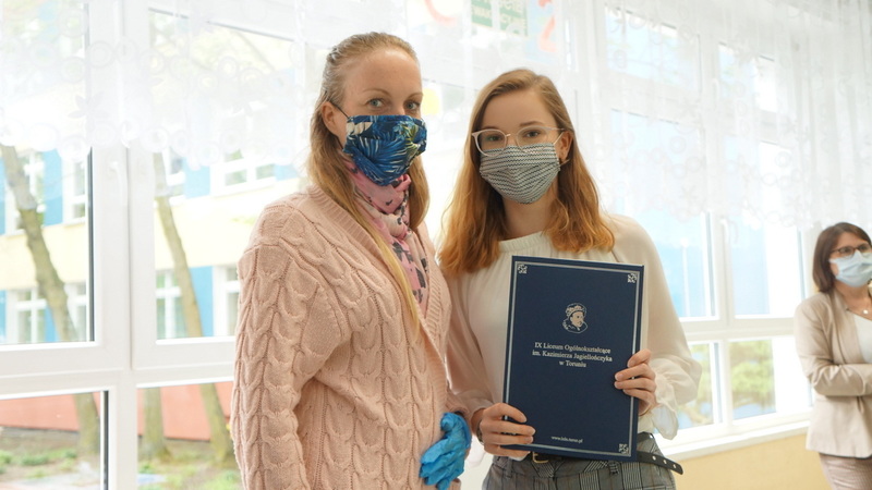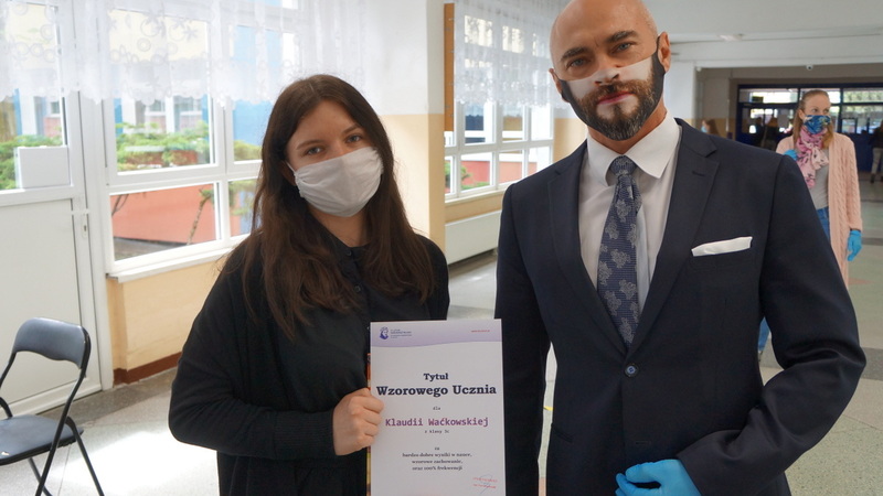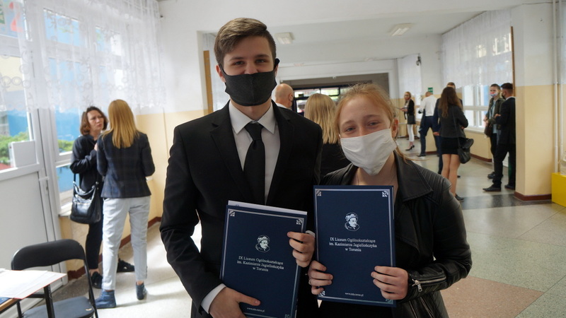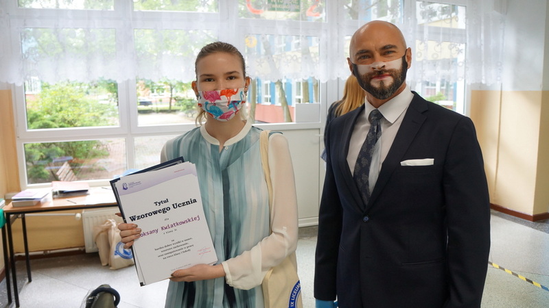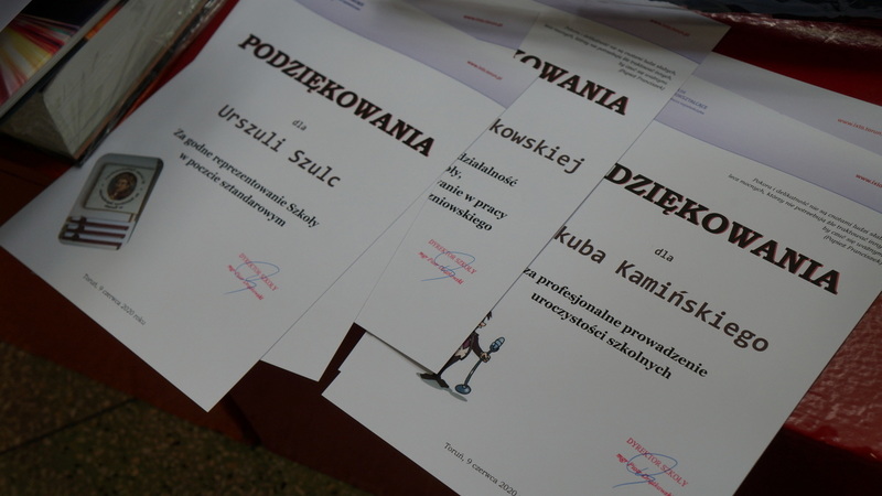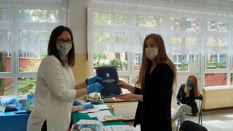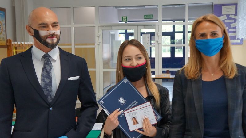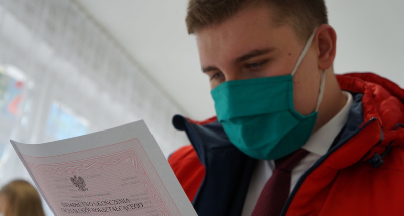 W dniu dzisiejszym po egzaminie z matematyki tegoroczni abiturienci odebrali świadectwa ukończenia szkoły. Mimo nadzwyczajnych warunków, z uwzględnieniem reżimu sanitarnego, nie zabrakło podziękowań, gratulacji i ukrytych pod maseczkami uśmiechów.