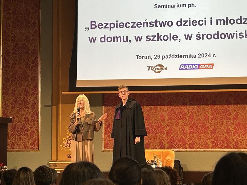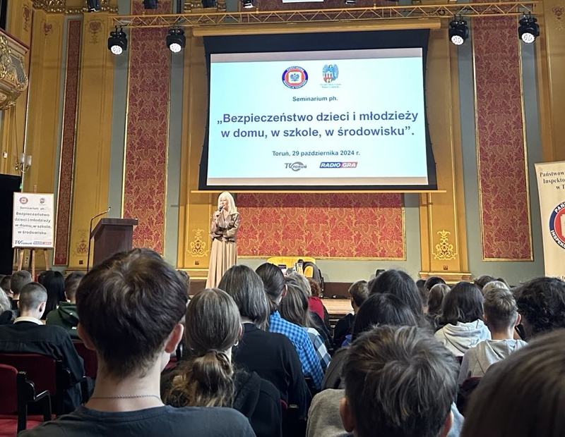 Dnia 28 października klasa 3e wraz z przedstawicielkami klasy 1a brała udział w ramach zajęć profilowych w seminarium na temat „ Bezpieczeństwo dzieci i młodzieży w domu, w szkole, w środowisku.” prowadzonym przez sędzię Annę Marię Wesołowską.