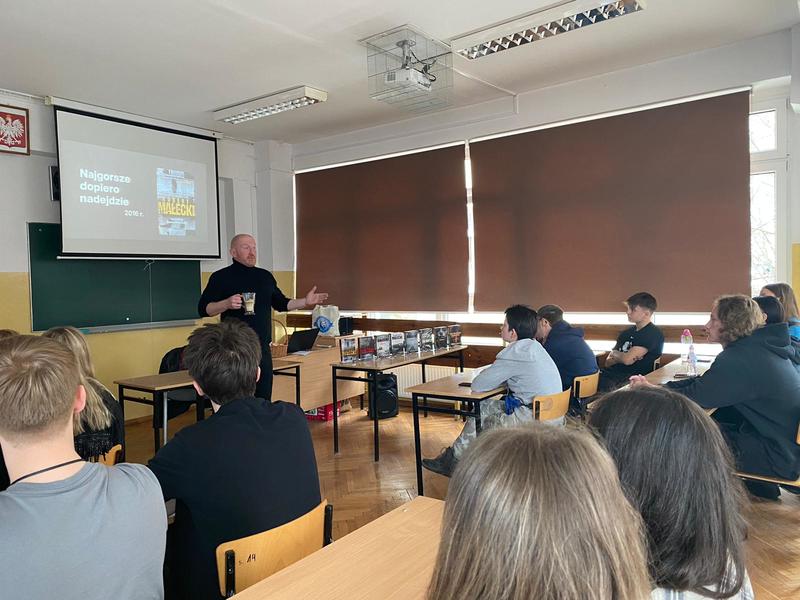 We wtorek gościł u nas p. Robert Małecki - politolog, filozof, nauczyciel kreatywnego pisania i powieściopisarz. W spotkaniu autorskim udział wzięli uczniowie klas 3gg i 2a.