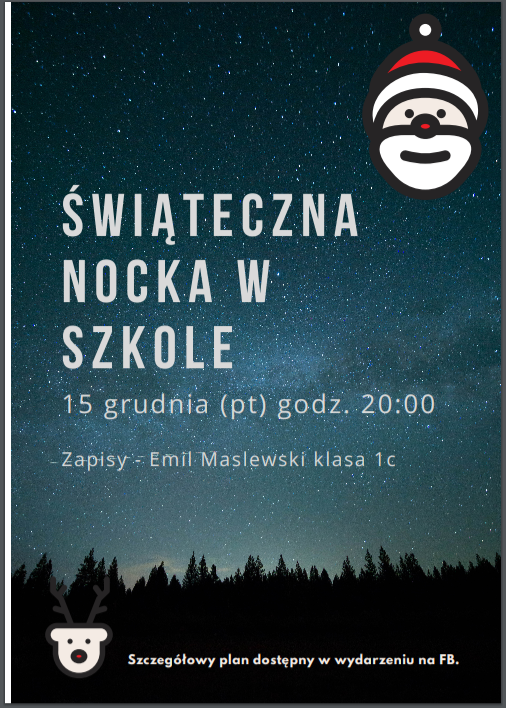 Pierwsza edycja świątecznej nocki w szkole już za nami. Organizatorzy - klasa 1c dziękuje nauczycielom, którzy umożliwili to wydarzenie: