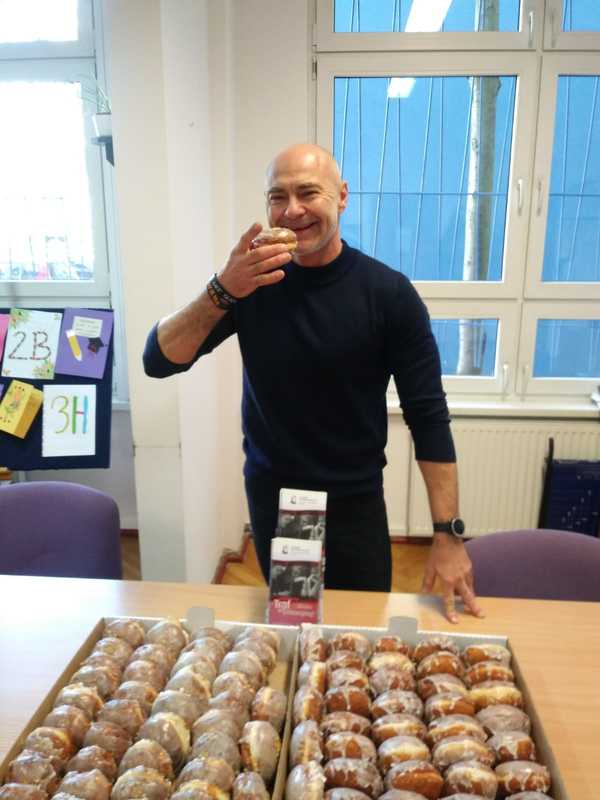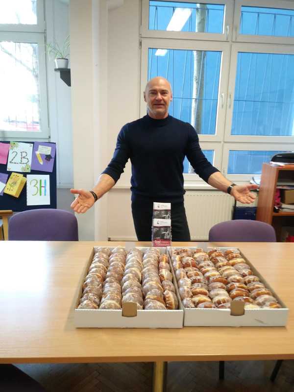 P. Dyrektor zaprasza wszystkich nauczycieli na poczęstunek do pokoju nauczycielskiego. Uczniów zapraszamy serdecznie na słodkości przy głównym wejściu szkoły. Pączki dla uczniów ufundowała Rada Rodziców.