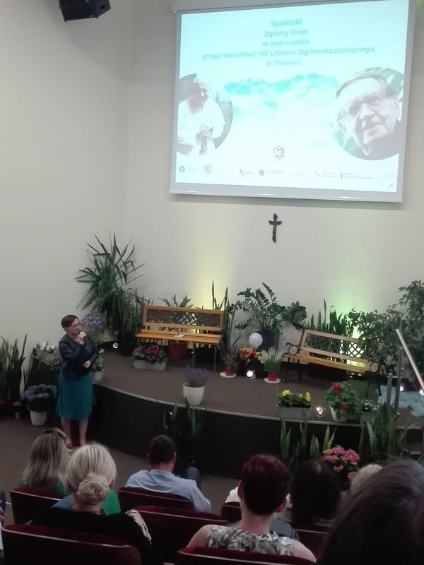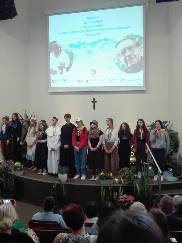 7 czerwca br. uczniowie z 2b razem z Panią Ewą Nowodworską uczestniczyli w spektaklu „Zgrany Duet”, opowiadającym o szczególnej więzi świętego Jana Pawła II z księdzem Janem Twardowskim.