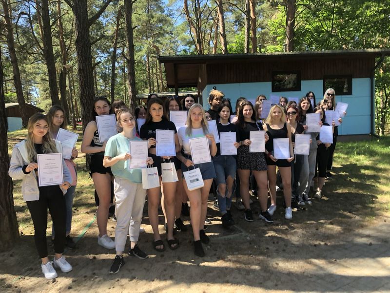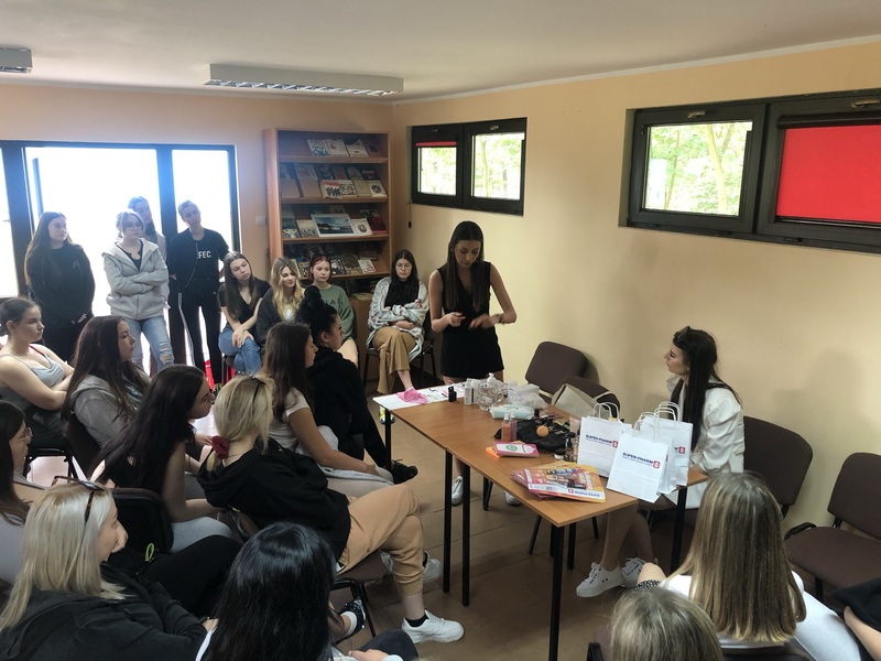 W dniach 14-16 czerwca klasy Zdrowie i Uroda brały udział w warsztatach profilowych w Rudniku. Wszystkie uczestniczki po trzydniowej pracy warsztatowej zdobyły zaświadczenia ukończenia 20-godzinnego kursu p.n. „Lider Zdrowia w zakresie promowania postaw prozdrowotnych, higieny czasu wolnego i wolontariatu sportowego”. W dniu kiermaszu kosmetycznego zajęcia prowadziły również absolwentki naszego profiu - Iga Piątek i Julia Surma.
