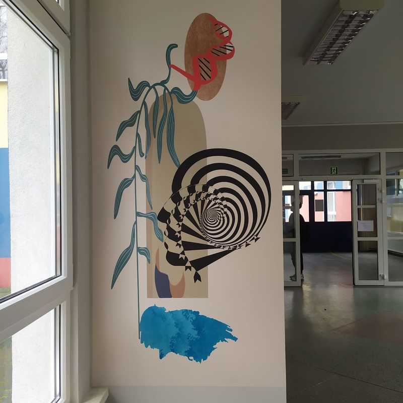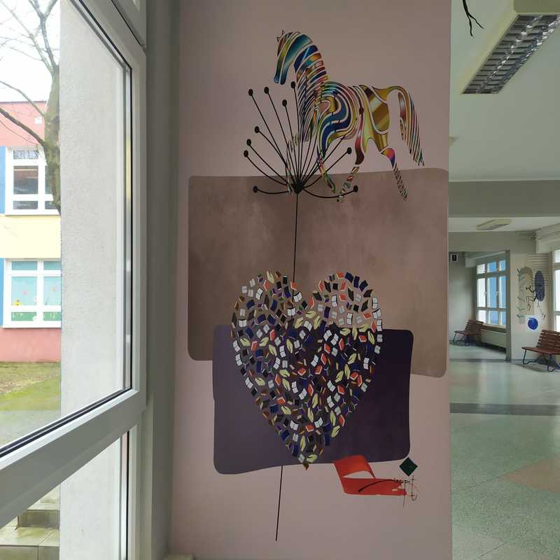 Pięknieje nam szkoła, a to za sprawą kolejnych wyremontowanych sektorów szkoły, które zostały wzbogacone o wspaniałe grafiki. Autorką tychże dzieł jest nasza polonistka p. Aneta Dobrzyńska.