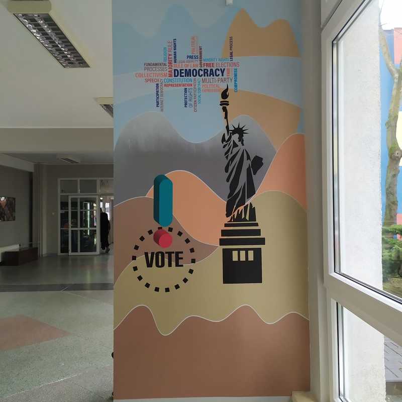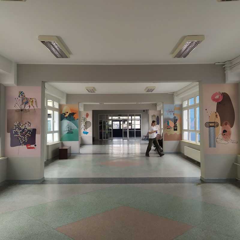 Prace, które stały się elementem wystroju naszej szkoły, to grafiki komputerowe. Nawiązują one do 3 profili, jakie funkcjonują w IX LO: humanistyczno-pedagogicznego, ogólnego i prozdrowotnego.