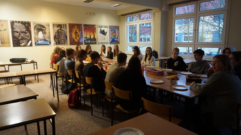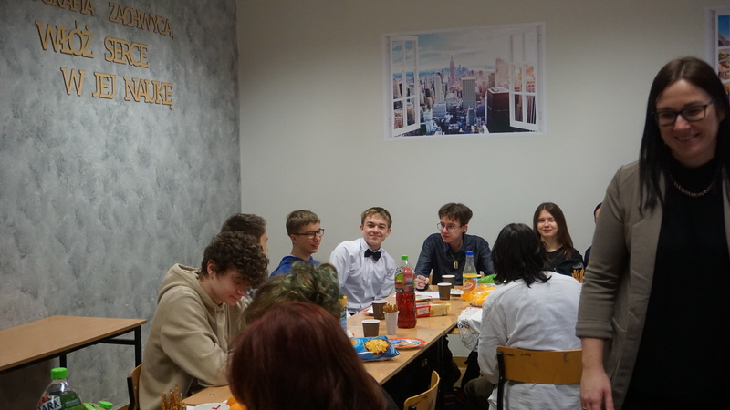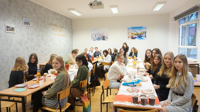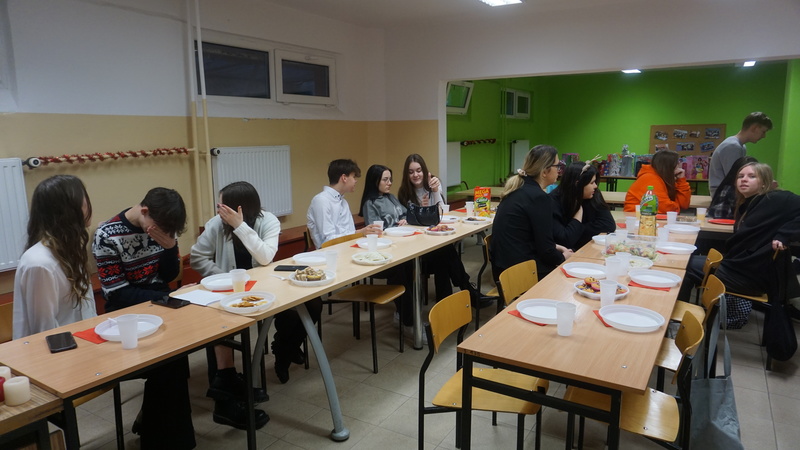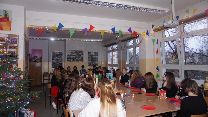 W tym roku w pierwszej kolejności odbyły się wigilie klasowe. Po nich spotkaliśmy się wszyscy na sali gimnastycznej i ogłoszone zostały wyniki corocznego Mikołajkowego Dnia Nauk Matematyczno-Przyrodniczych (w którym rywalizowały wszystkie klasy). Następnie przeszliśmy do wspólnego kolędowania. Repertuar pastorałek, kolęd i świątecznych piosenek przygotowały klasy pierwsze, niespodzianką była kolęda wykonana przez samych nauczycieli. Nie obyło się bez życzeń od Dyrekcji szkoły i organów oświaty.