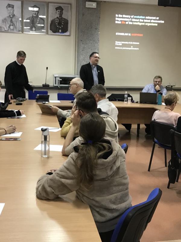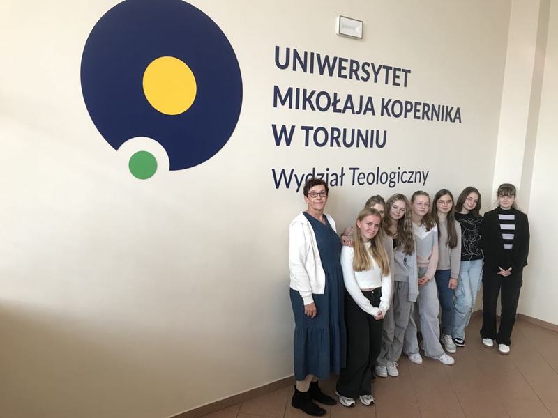 Jak się okazało, wyjście, to nie tylko ciekawe treści, ale też ciekawe osoby. Przed Wydziałem Teologicznym spotkałyśmy ks. Profesora Dariusza Iwańskiego, znanego biblistę, który serdecznie nas przywitał i chwilę z nami porozmawiał. Miłą niespodzianką było spotkanie na przystanku tramwajowym Pana Profesora Grzegorza Karwasza, kierownika Katedry Dydaktyki Fizyki UMK, autora książki „Nauka i wiara”, który również uczestniczył w wykładzie „Dziury w teorii ewolucji”. Pan Profesor zaprosił na swój Wydział uczniów naszej szkoły na wykład o stworzeniu świata. To może być interesujące doświadczenie, móc posłuchać wykładu o stworzeniu świata przez Boga wygłoszonym na Wydziale Fizyki.