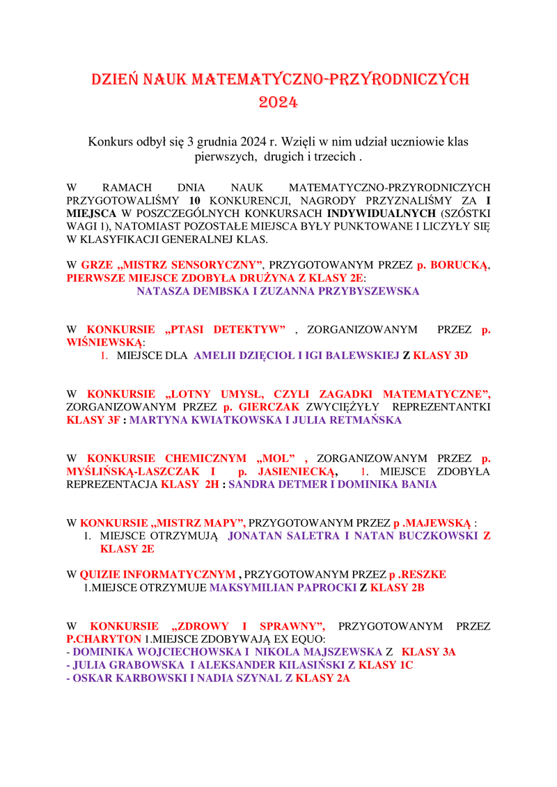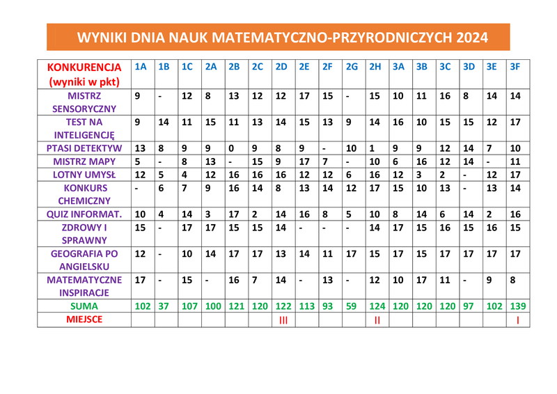 Wynik zmagań z Dnia Nauk Matematyczno-Przyrodniczych 2024