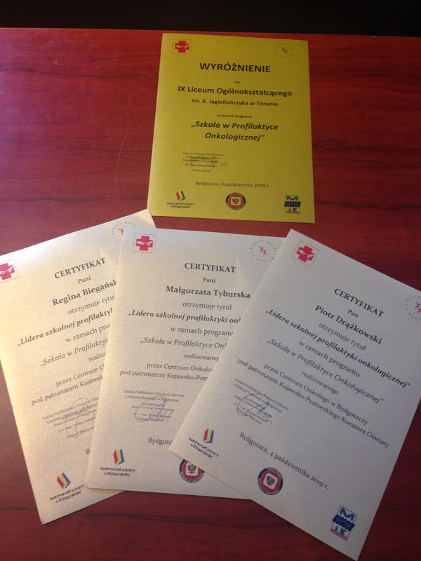 Jesteśmy w gronie laureatów – otrzymaliśmy wyróżnienie za program przedstawiony w ubiegłym roku szkolnym, w ramach projektu "Szkoła w profilaktyce onkologicznej".