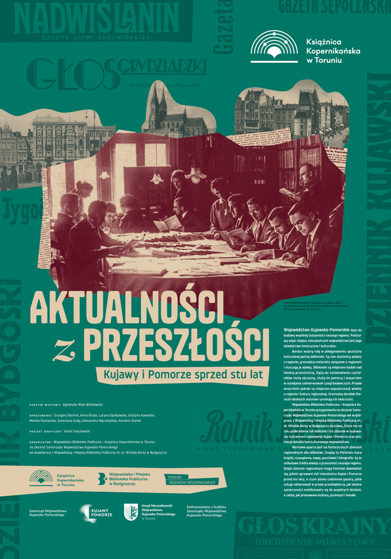 Jest to wystawa planszowa, która opowiada o regionie Kujaw i Pomorza z okresu międzywojennego. Oparta jest na historycznych zbiorach regionalnych Wojewódzkiej Biblioteki Publicznej Książnicy Kopernikańskiej w Toruniu oraz Wojewódzkiej i Miejskiej Biblioteki Publicznej im. dr. Witolda Bełzy w Bydgoszczy. Znajdują się tam materiały z książek, czasopism, fragmenty map, pocztówki i fotografie. Wystawa "Aktualności z przeszłości Kujawy i Pomorze sprzed stu lat" to prezentacja wybranych zbiorów regionalnym dzięki, którym dowiedzieć się można, jakimi sprawami żyli mieszkańcy Kujaw i Pomorza sprzed stu laty. O czym pisały codziennie gazety, jakie usługi reklamowali w prasie przedsiębiorcy, jak lokalne społeczności mobilizowały się do wspólnych działań, a także, jak promowano kulturę, przemysł i handel. Jest ona wspaniałą okazją do poszerzania wiedzy historycznej dotyczącej naszej małej ojczyzny jaką jest województwo kujawsko-pomorskie.
