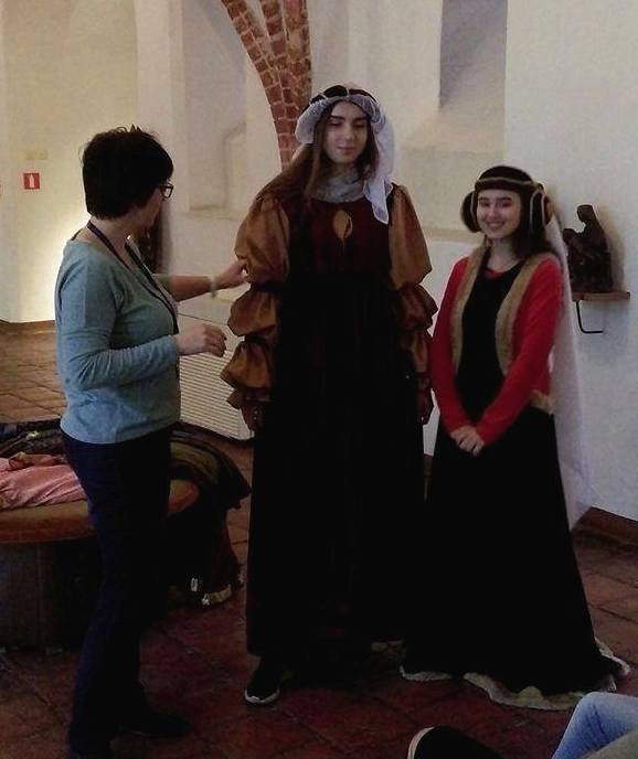 1 a w Muzeum Okręgowym w Toruniu na lekcji muzealnej, ufundowanej przez Wydział Edukacji Urzędu Miasta w ramach akcji „Razem dla siebie i innych” - zajęcia z kostiumologii średniowiecznej.