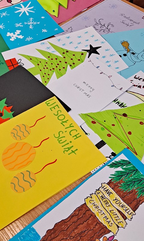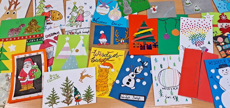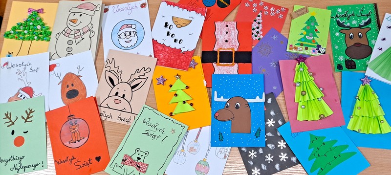 Z inicjatywy Julii Simonow z klasy 1F oraz Wiktorii Matuszak z klasy 4B uczniowie naszej szkoły wykonali kartki świąteczne, które zostaną przekazane Hospicjum ,,Nadzieja’’ oraz do domu seniora Willa Chopina. Łącznie wolontariusze z klas 1B, 1F, 2B, 3B, 4A, 4B oraz 4D wykonali blisko 200 kartek.
