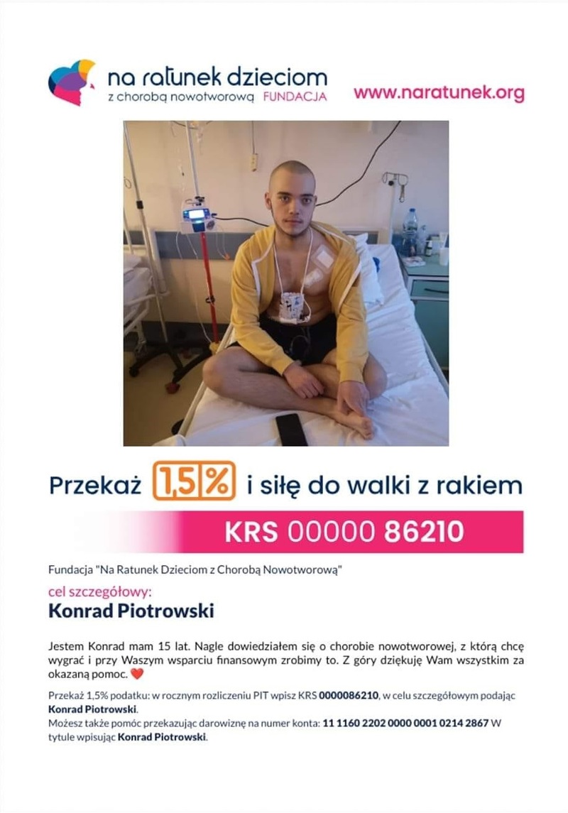 Link do zbiórki dla Konrada: Zrzutka na Leczenie Konrada - Joanna Piotrowska | Pomagam.pl