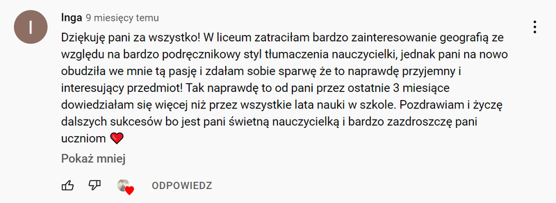 Zobacz komentarze na temat lekcji zamieszczonych na tym kanale