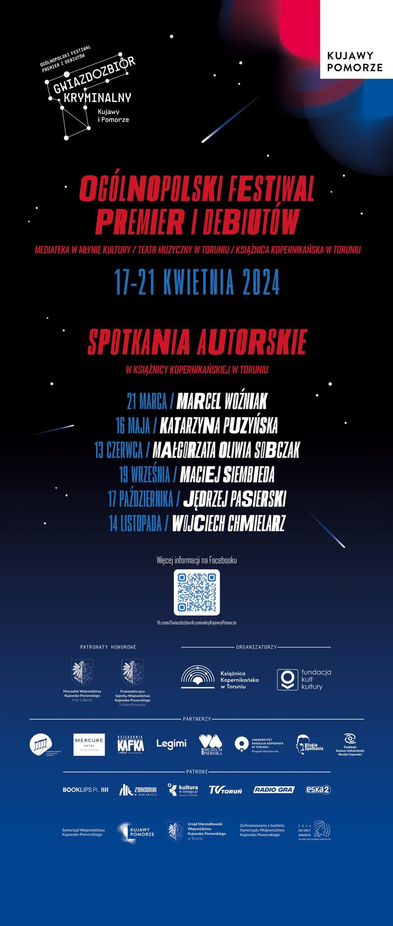Już nie możemy doczekać się Gwiazdozbioru Kryminalnego Kujaw i Pomorza, który odbywa się zawsze w naszym pięknym Toruniu. Tegoroczna edycja Gwiazdozbioru Kryminalnego odbędzie się w dniach 17-21 kwietnia.