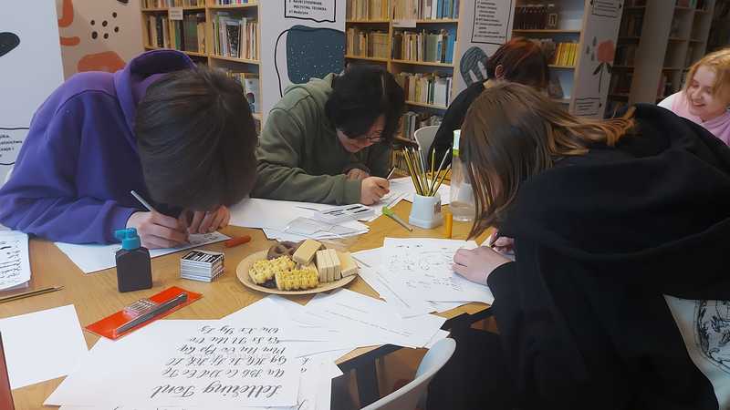- próbowaliśmy swoich sił w sztuce kaligrafii (wraz z cytatami z utworów Miłosza i Gombrowicza),