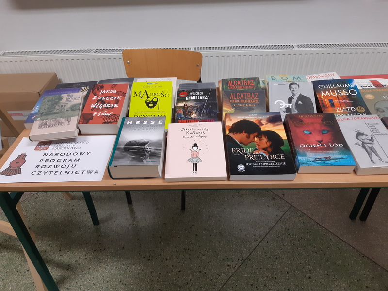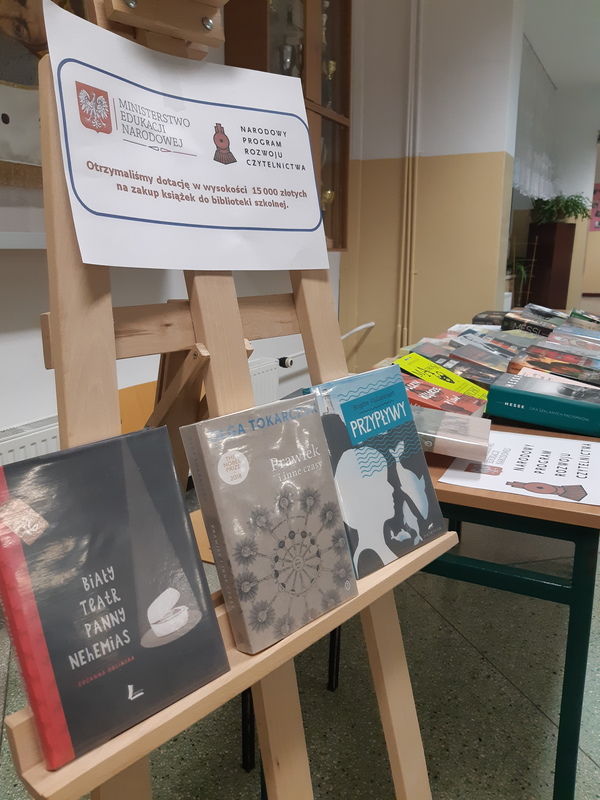Podczas wczorajszych zebrań z rodzicami - w formie małego stoiska - prezentowaliśmy rodzicom część nowo zakupionych książek sfinansowanych z dotacji Narodowego Programu Rozwoju Czytelnictwa w 2019 roku.