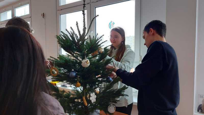 nasza biblioteka także jak cała szkoła intensywnie przygotowuje się do najbliższych świąt. Dziś uczniowie klasy 1b przepięknie ustroili naszą biblioteczną choinkę. Ciekawe, co znajdziecie w najbliższych dniach pod jej gałązkami? Zapraszamy do biblioteki, a przekonacie się osobiście.