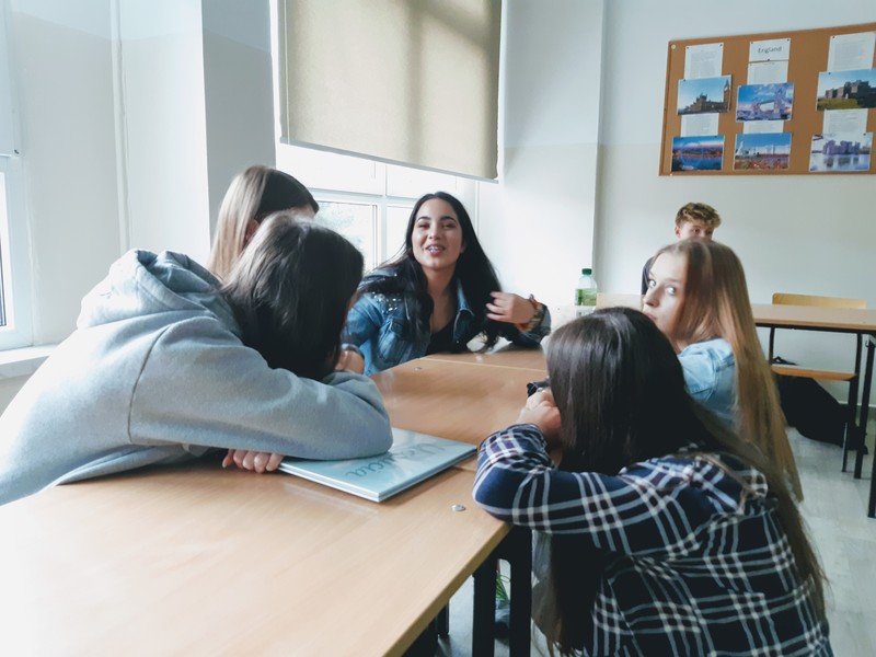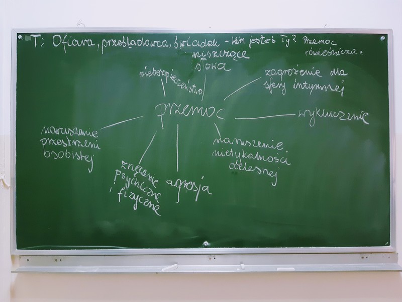 W dniu 18.11.2019 klasa 1h uczestniczyła w zajęciach dotyczących przemocy rówieśniczej "Ofiara, prześladowca, świadek - kim jesteś Ty? Przemoc rówieśnicza". Lekcje te poprowadziła p. Gabriela Gustowska, p. Hanna Jewiaki i p. Monika Lubas. Zajęcia zostały opracowane i zrealizowane na podstawie treści picturebooka pt. "Nombres robados" (Skradzione imiona). Uczniowie dzięki tym lekcją poznali różne rodzaje nacisków, presji, wpływów, a także podsumowali swoją wiedzę nt. pomocy osobą dotkniętym przemocą.